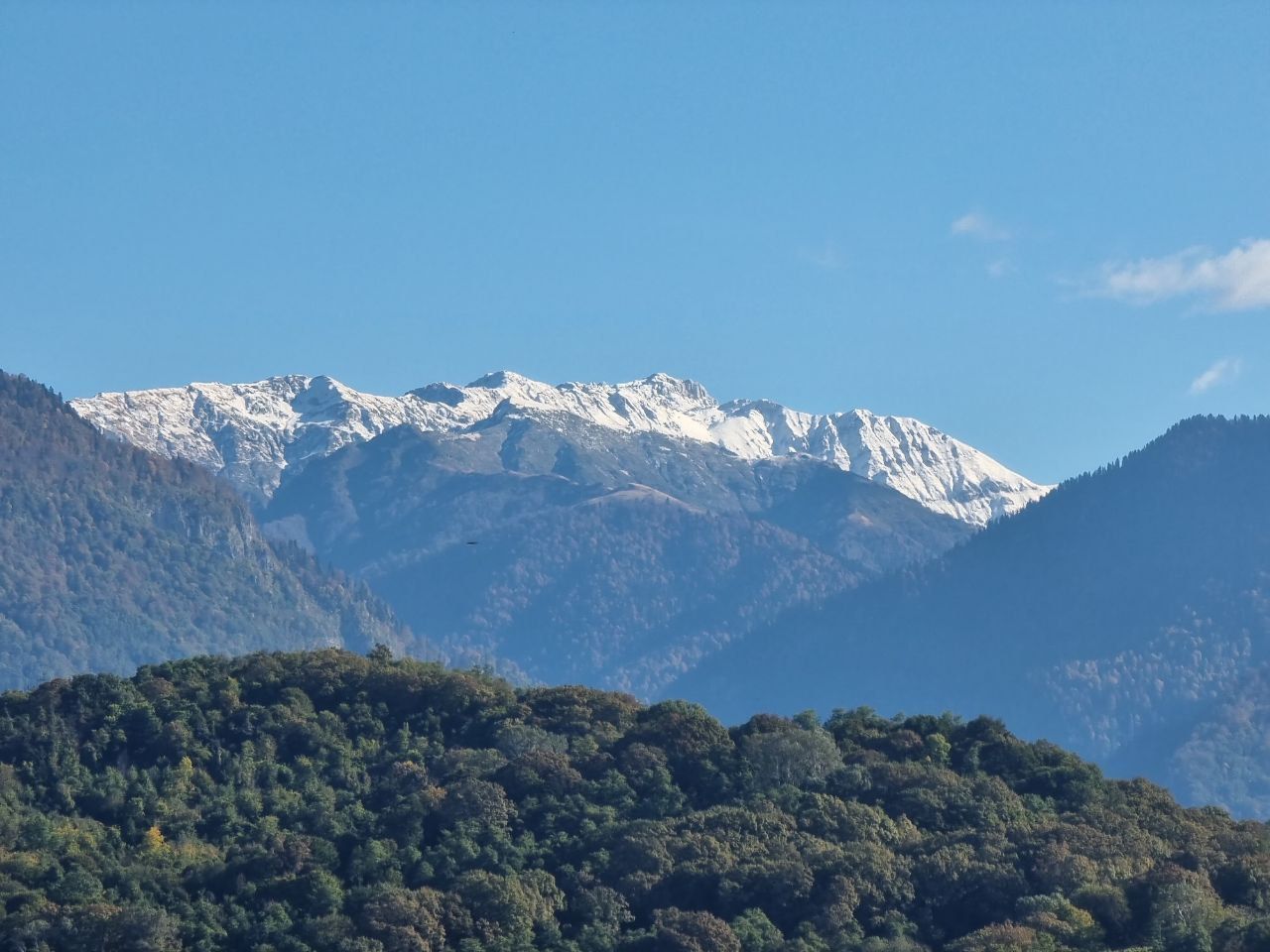 Из Аэропорта Сочи (Адлер) на такси до (пешеходной) границы Псоу. На стороне Абхазии заберем и поднимем в горы. Связь работает российская.