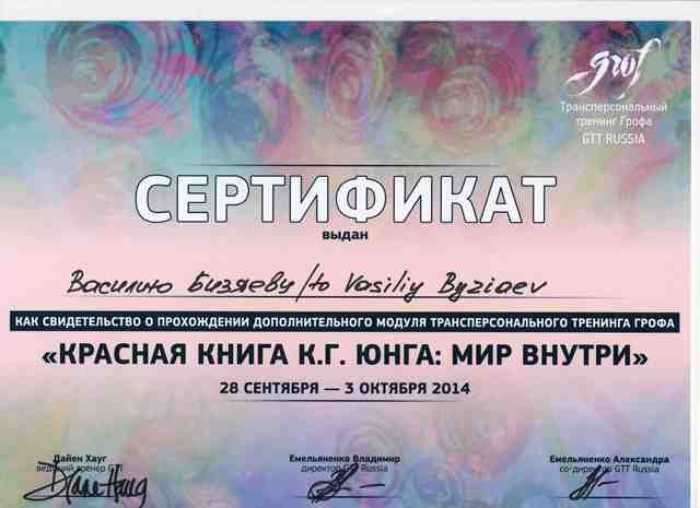 - трансперсональная психотерапия (сертификат от 2002 г)